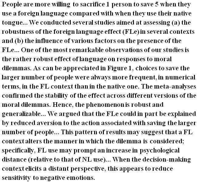 Judging in tongues: People are more willing to sacrifice one person to save five when they use a foreign language. http://psycnet.apa.org/index.cfm?fa=buy.optionToBuy&id=2017-00758-001 …pic.twitter.com/OCbMz3z9yq