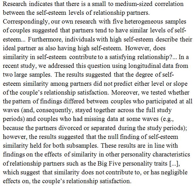 Romantic partners have similar levels of self-esteem, though that is not necessary for relationship satisfaction. http://econtent.hogrefe.com/doi/pdf/10.1027/1016-9040/a000259 …pic.twitter.com/lMgzc6C3OG