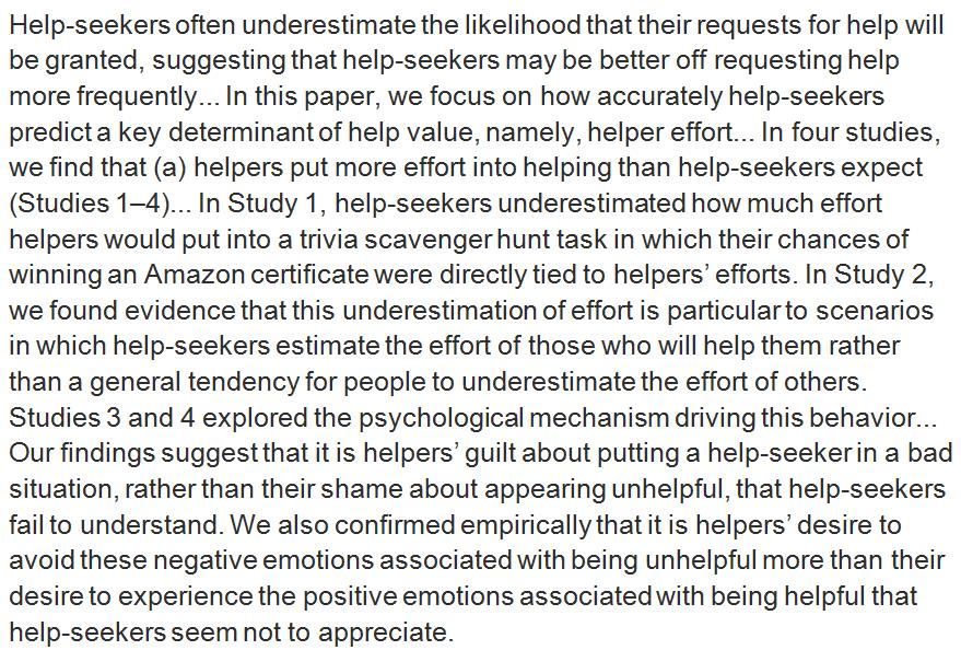 Help-seekers underestimate the likelihood of their request being granted AND the effort the other side would invest. http://www.sciencedirect.com/science/article/pii/S0749597815302004 …pic.twitter.com/6Bx3fQ6EYi