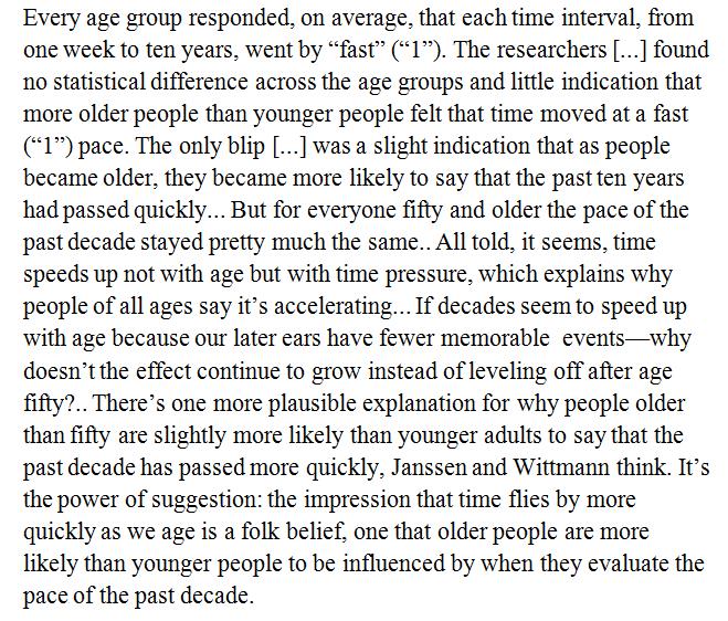 This is saying that time seem to go by faster, because we "have fewer memorable events." Which actually we already knew.
