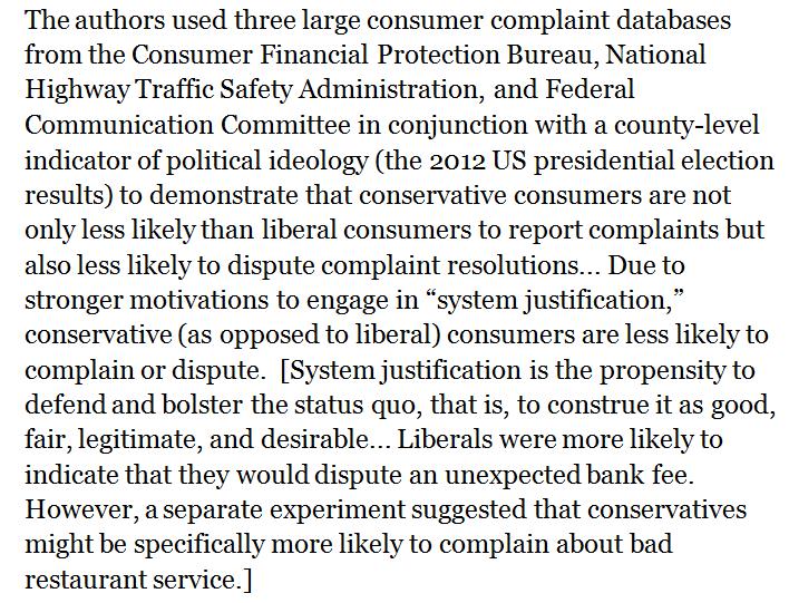 Buyer's remorselessness: Conservative consumers are less prone to report complaints when dissatisfied with a bargain https://academic.oup.com/jcr/article-abstract/doi/10.1093/jcr/ucx037/2939534/Blue-and-Red-Voices-Effects-of-Political-Ideology?redirectedFrom=fulltext …pic.twitter.com/0aky1OIiMw