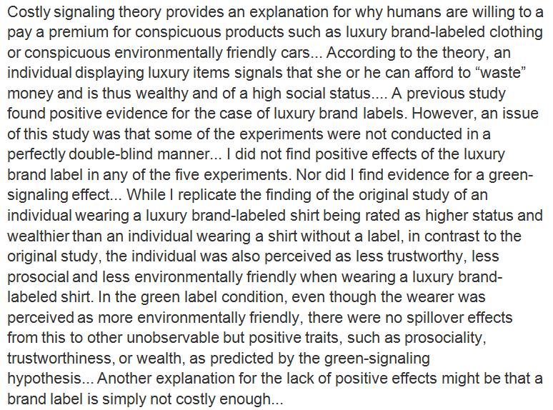 2011 vs 2015? Also, they found that costly signals of questionable fashionability do not convey positive impressions.