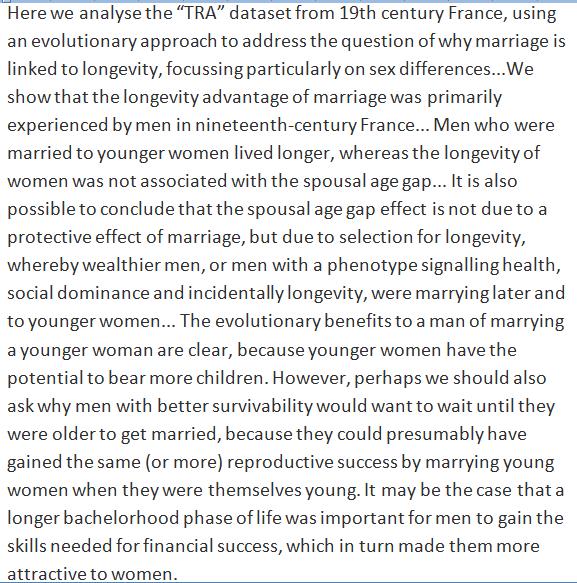 Men, but not women, who were married to a younger partner lived longer. http://www.sciencedirect.com/science/article/pii/S1090513817300466 …pic.twitter.com/lgGfbmQwnr
