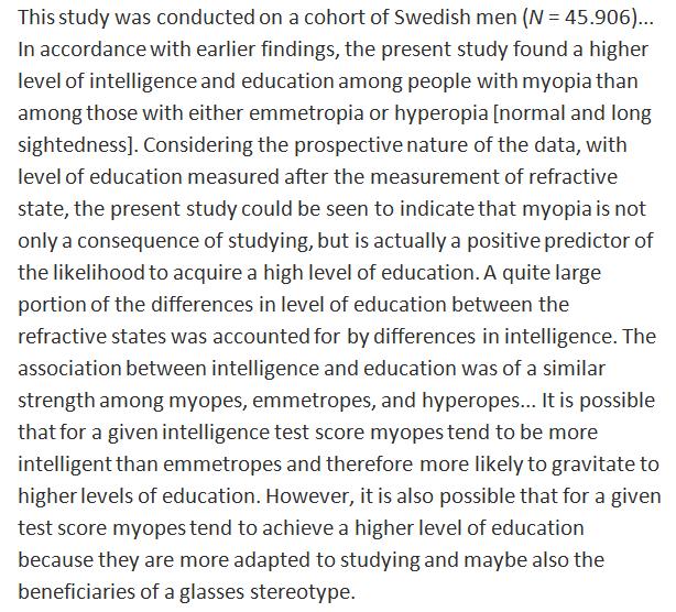 Hmmm. Have they really demonstrated that this is not a case of reading more makes you myopic?