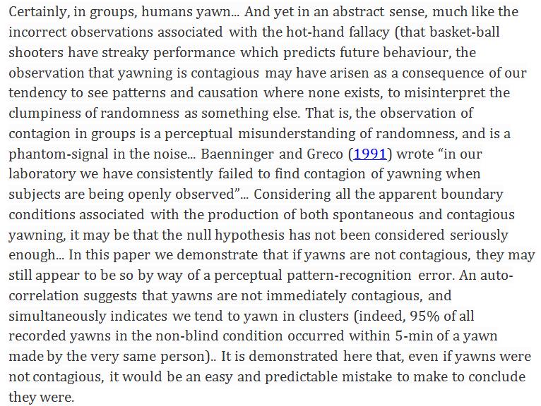 Poor Psychology: Not even the contagiousness of contagious yawning has been sufficiently demonstrated. http://link.springer.com/article/10.1007/s40750-017-0059-y …pic.twitter.com/dVD99Nm1x8
