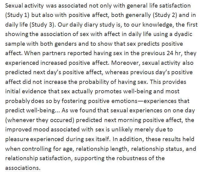 Couples who had sex experienced positive emotions that carried over into the next day. http://journals.sagepub.com/doi/full/10.1177/0146167216684124 …pic.twitter.com/drrfRfmlaK