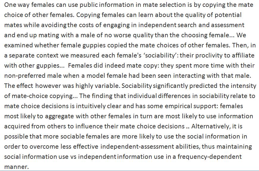 not clear if sociable females copy more as a direct effect of their personality or as an indirect one of time spent with others.