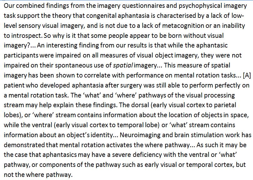People with aphantasia cannot summon sensory images to the mind’s eye, but they can perform mental rotations. https://share.osf.io/preprint/4619F-85A-3FE …pic.twitter.com/4I3nuGRhtc