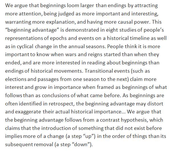 Point of origin: People attach greater importance to beginnings than to endings of historical epochs and events. http://www.sciencedirect.com/science/article/pii/S0010027717300537 …pic.twitter.com/rl7OpnNvEV