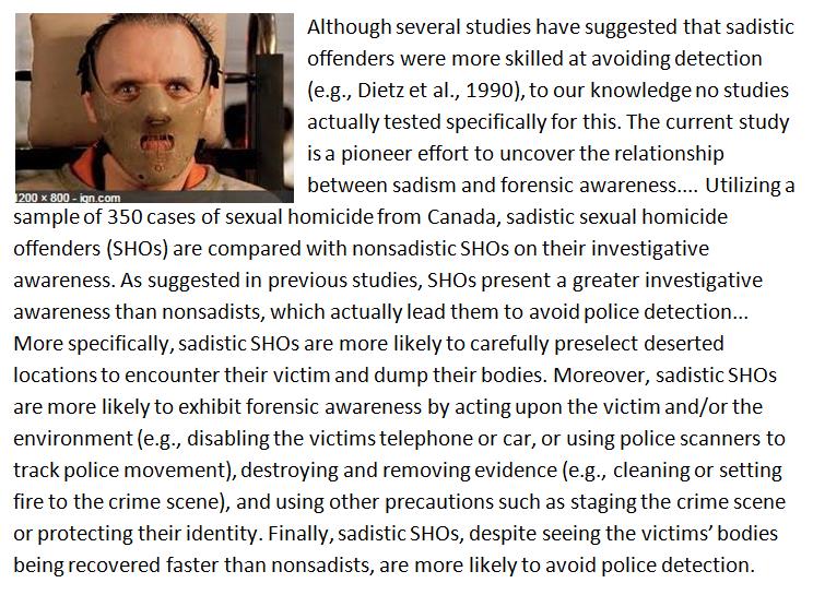 Sadistic murderers are rather savvy about police procedures and particularly likely to avoid detection. http://journals.sagepub.com/doi/abs/10.1177/0886260517698824 …pic.twitter.com/98XIuGJSFQ