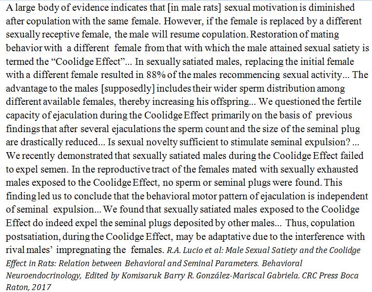 Male rats sexually satiated by the Coolidge Effect https://plus.google.com/101046916407340625977/posts/YqmDFX693No … don't expel sperm when reinvigorated through a fresh sex object.pic.twitter.com/EMOd8659n2