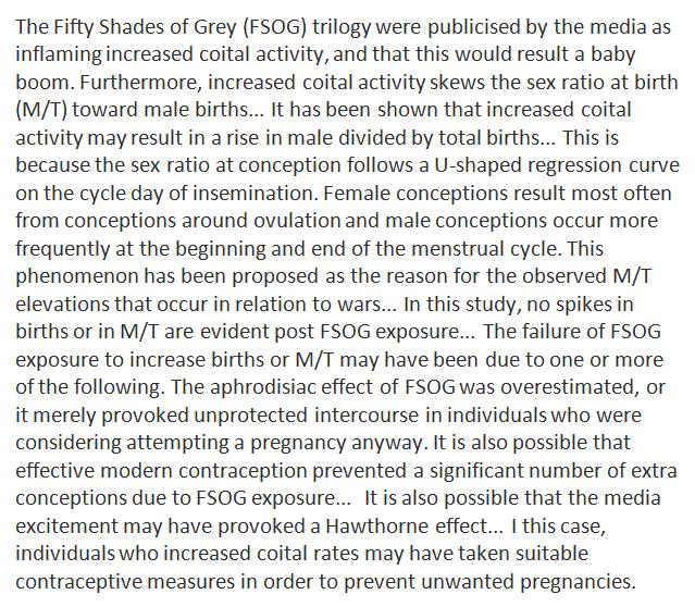 Contrary to media announcements, the Fifty Shades of Grey hype didn't incite a baby boom or a spike in male births. http://www.sciencedirect.com/science/article/pii/S0378378217301603 …pic.twitter.com/kiN5LUrOLS