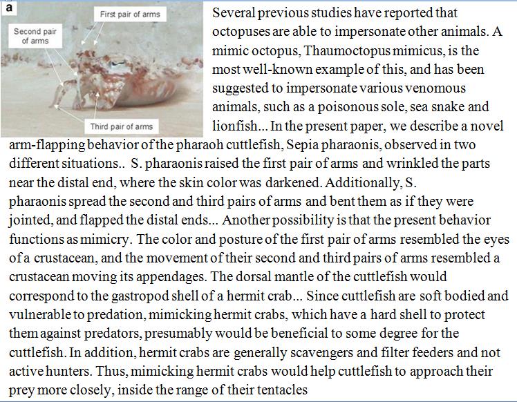 The pharaoh cuttlefish impersonates a hermit crab, for safety reasons. https://link.springer.com/article/10.1007/s10164-017-0519-7 …pic.twitter.com/TFAN4hPttv