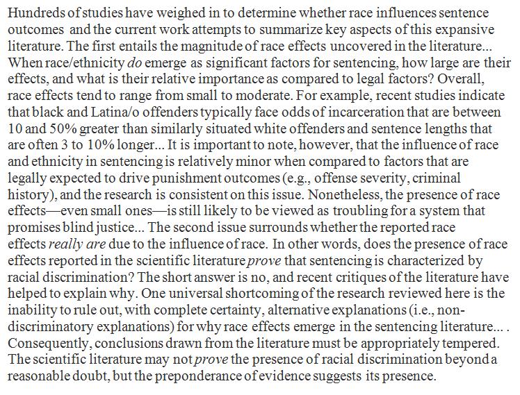 So for a 25 year murder sentence that's between 9 months and 2.5 years extra time for being black. Smaller than I expected