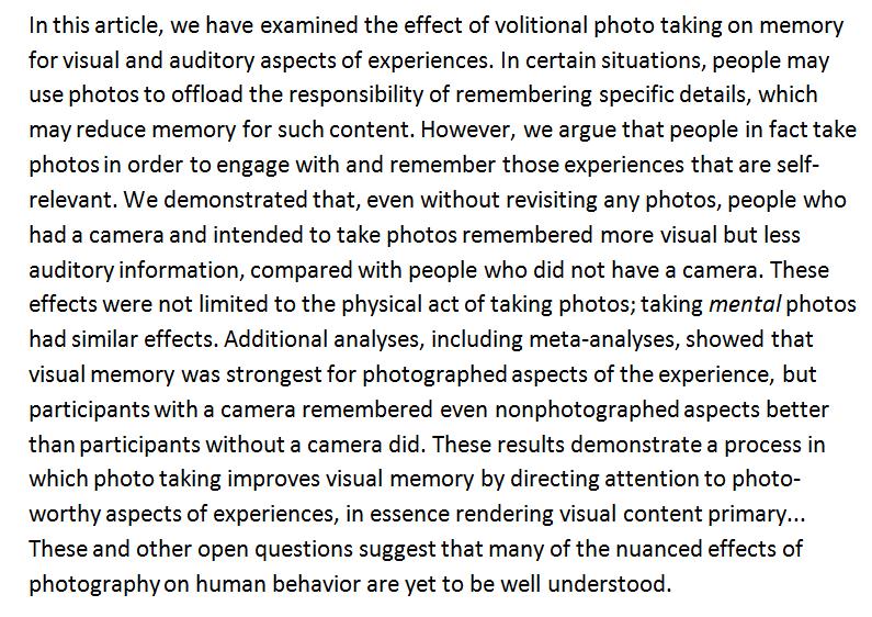 Individuals who took photographs of their experiences had better memories of their visual details. http://journals.sagepub.com/doi/full/10.1177/0956797617694868 …pic.twitter.com/VEqcEAUYef