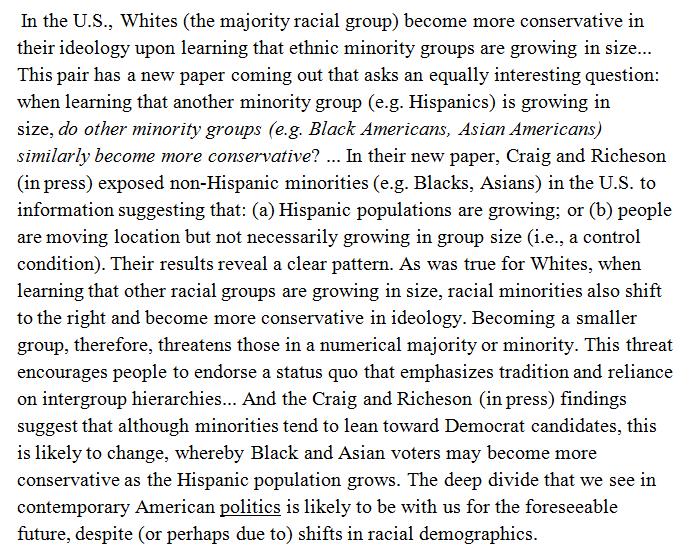 When learning that other racial groups are growing in size, even racial minorities become more conservative. https://www.psychologytoday.com/blog/without-prejudice/201706/minority-growth-makes-other-minorities-more-conservative …pic.twitter.com/SIOJt0BKj3