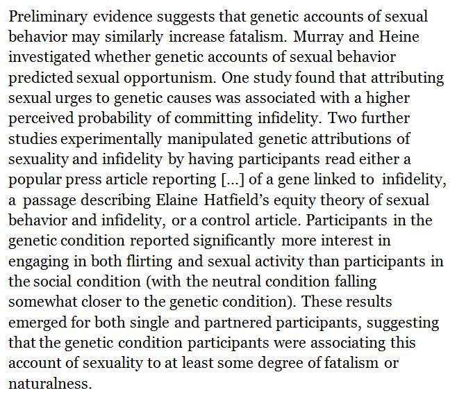 Attributing sexual urges to genetic causes was linked to a higher perceived probability of committing infidelity. http://guilfordjournals.com/doi/abs/10.1521/soco.2017.35.4.475 …pic.twitter.com/bR0wXdN2DC