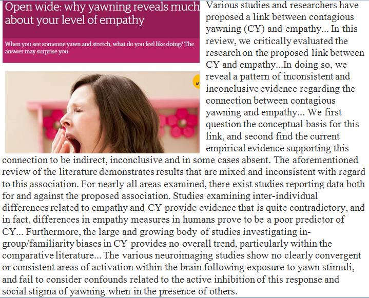 Debunking the yawn yarn: Susceptibility to contagious yawning doesn't betray your level of empathy. http://www.sciencedirect.com/science/article/pii/S0149763417303500 …pic.twitter.com/UWNwsJEyvZ
