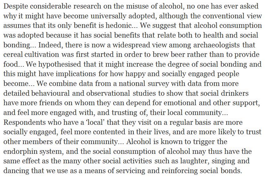 Under the influence of alcohol, subjects acted more cooperatively & showed more altruistic giving in economic games. http://onlinelibrary.wiley.com/doi/10.1002/soej.12179/full …pic.twitter.com/YgfvMOeHGR