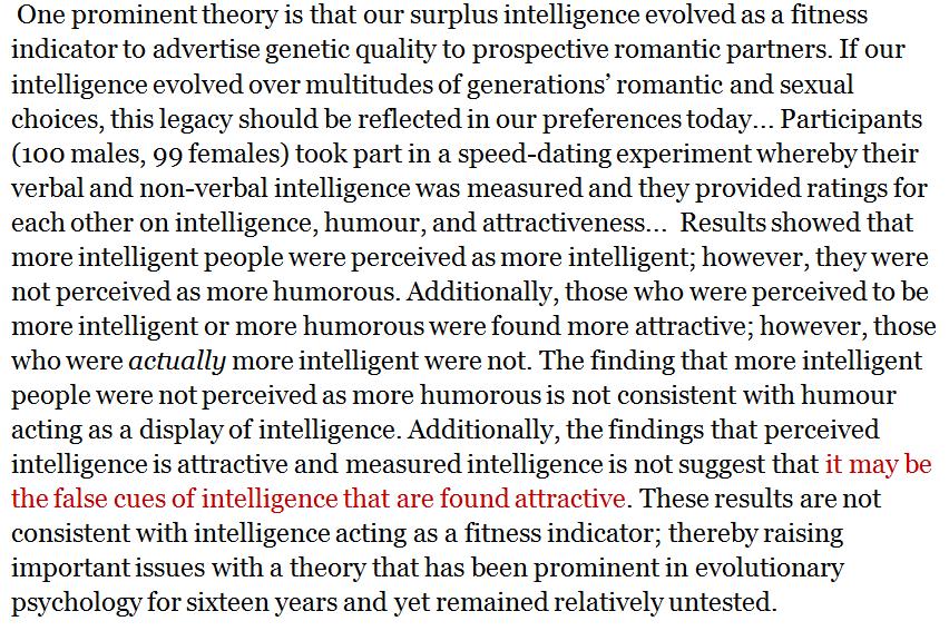 more intelligent people were perceived as more intelligent... those who were perceived to be more intelligent... were found more attractive