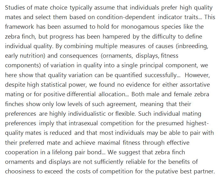 The idea that mate choice centers around "good genes" increasingly turns out to be bad science. http://onlinelibrary.wiley.com/doi/10.1111/evo.13341/full …pic.twitter.com/4VcBcQpP30