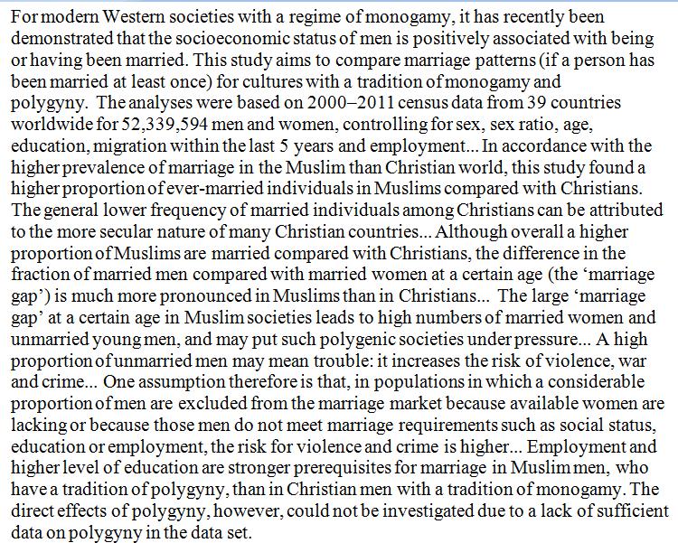 Muslim societies have a far larger marriage gap (share of unmarried young men), which tends to spell trouble. https://www.cambridge.org/core/journals/journal-of-biosocial-science/article/marriage-gap-in-christians-and-muslims/ABAA57B01DDA5DB16A620624EF9B2291 …pic.twitter.com/1ftdz7ebuh