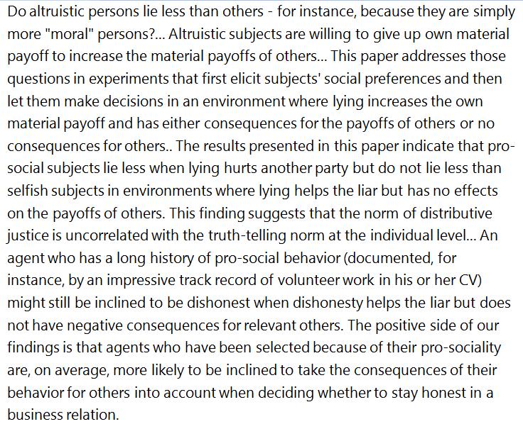 Altruistic individuals lie as often as more selfish ones, unless lying hurts another party. https://eeecon.uibk.ac.at/wopec2/repec/inn/wpaper/2017-18.pdf …pic.twitter.com/wXgvNIajyH