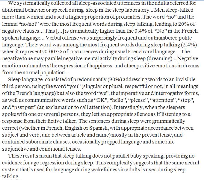 Men talk more than women in sleep, and it is not particularly nice. But at least it is grammatically correct. https://academic.oup.com/sleep/article-abstract/doi/10.1093/sleep/zsx159/4345704/What-does-the-sleeping-brain-say-Syntax-and?redirectedFrom=fulltext …pic.twitter.com/lm0mCWSUUv