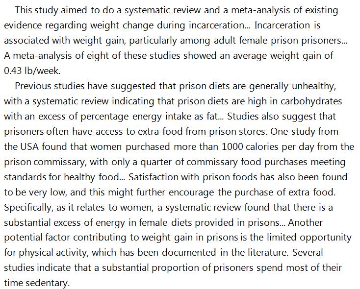 Prison paunch: Inmates tend to put on weight during incarceration. http://onlinelibrary.wiley.com/doi/10.1111/obr.12622/abstract?campaign=wolearlyview … But likely not these: http://www.nytimes.com/2011/11/12/us/soy-diet-is-cruel-and-unusual-florida-inmate-claims.html …pic.twitter.com/TXuCtSbXjG