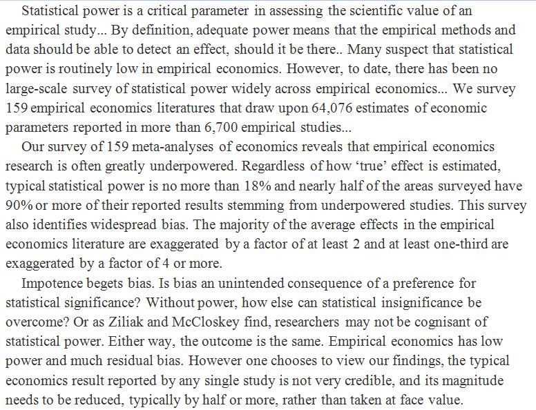 I always knew about the biases in research, but I am surprised to hear that power is an issue...particularly in economics.