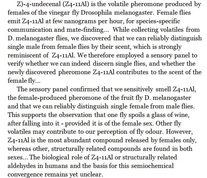 The ointment in the fly: Humans can tell male & female fruit flies by smell; one dead female spoils a glass of wine https://www.biorxiv.org/content/early/2017/10/20/206375 …pic.twitter.com/xarzqwlc4O