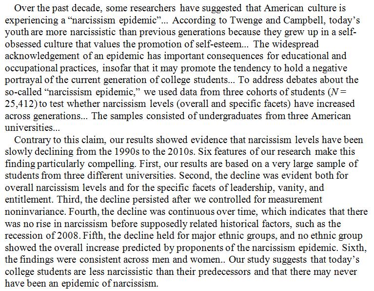 Could the so called "narcissism epidemic" be mistaken for a large decline in trait agreeableness? Symptoms are similar.