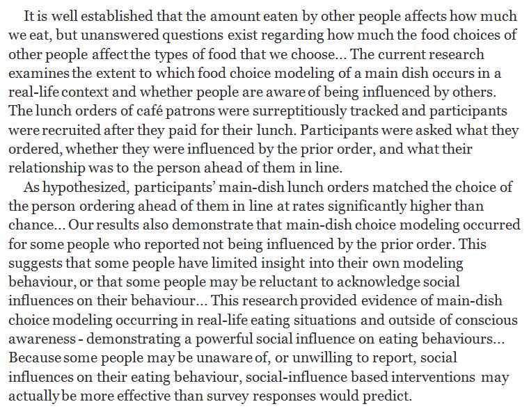 I want what she has: Food choices can be unconsciously influenced by the choices of the person ahead in the line. http://www.sciencedirect.com/science/article/pii/S019566631731005X …pic.twitter.com/WjHCJF4fTF