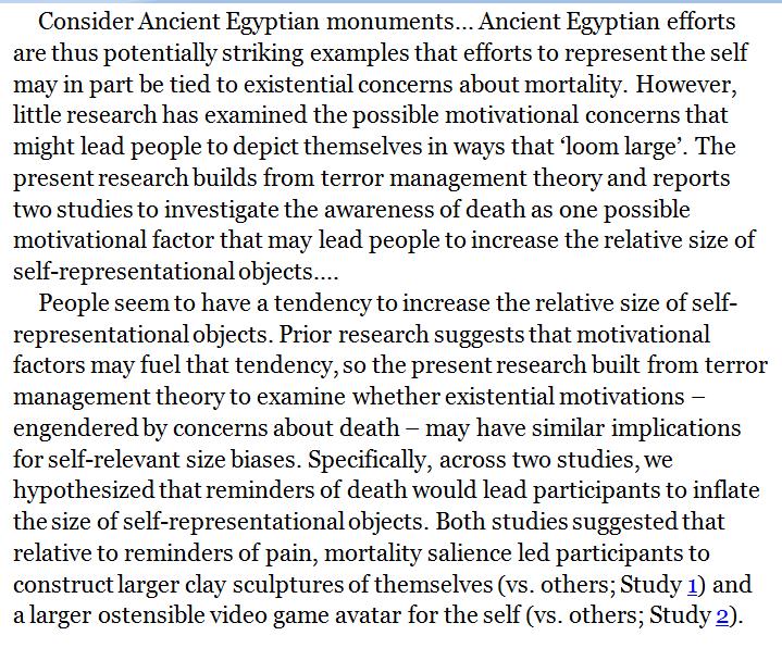 Priming folly: Reminders of death made people construct larger clay sculptures & video game avatars for themselves. http://onlinelibrary.wiley.com/doi/10.1111/bjso.12227/full …pic.twitter.com/HXwtEK4BhH