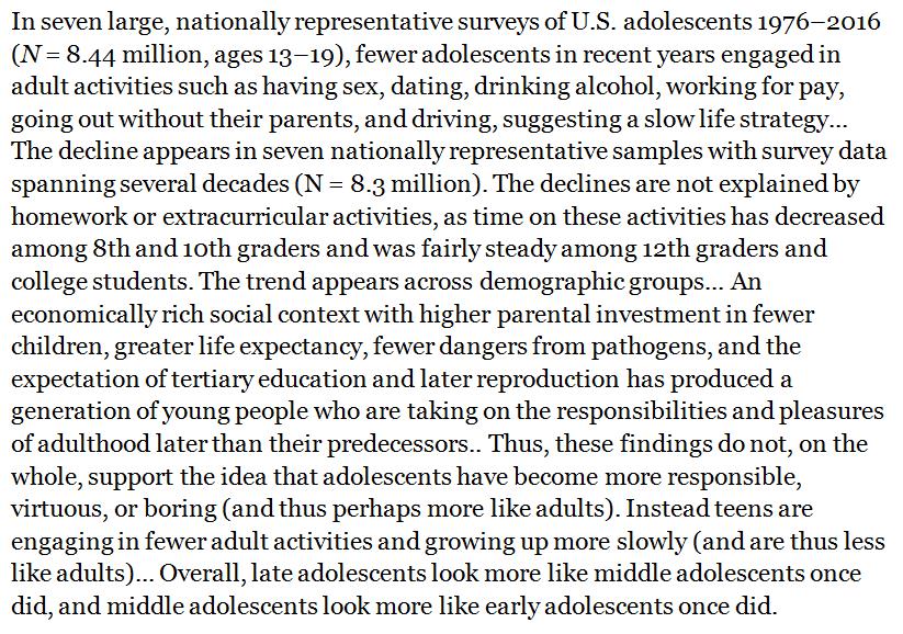 American adolescents behave less like adults than they did in previous decades. http://onlinelibrary.wiley.com/doi/10.1111/cdev.12930/abstract?campaign=wolearlyview … pic.twitter.com/A6Qr79UemX