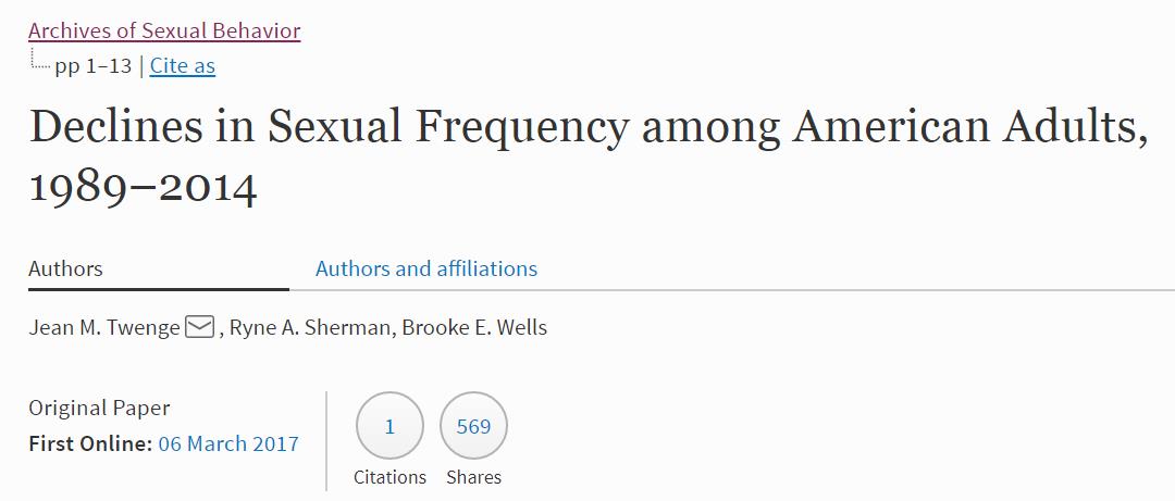 Thanks-Unfortunately this article you cite actually supports the WSJ article.Just look at the last line of your posting. Here is another article that supports the WSJ article more clearly: Twenge, J.M.,Sherman,R.A.&Wells,B.E. Arch Sex Behav (2015) 44:2273.https://doi.org/10.1007/s10508-015-0540-2 …
