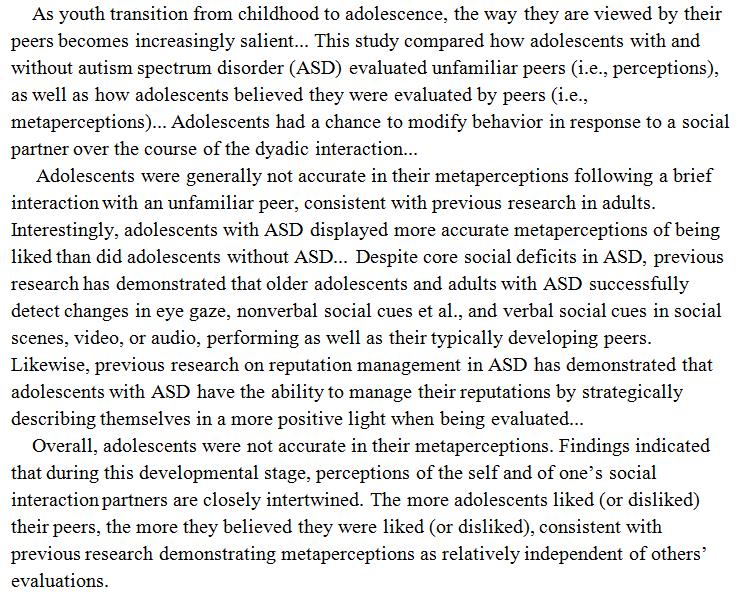 Adolescents with autism spectrum disorder judged more accurately if they were liked by others than their peers. https://link.springer.com/article/10.1007/s10803-017-3356-1 …pic.twitter.com/hDpzfBqJqi