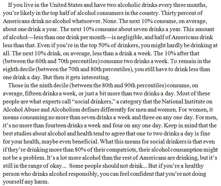 in the abstract concept of "drink" this means I get up to 28 drinks for week. Am I a drunkard ? Or it depends on what you drink ?