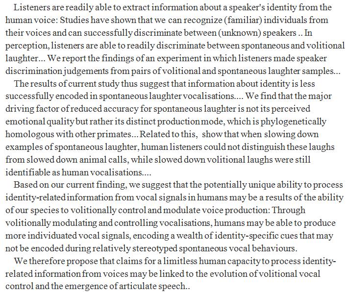 Humans are rather bad at recognizing others by their laughter, as it is too bestial. http://www.sciencedirect.com/science/article/pii/S1090513817301319 …pic.twitter.com/SKj56wM8NR
