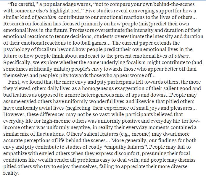 The experience of envy is fueled by the delusionary belief that those deemed better off than oneself have uniformly wonderful lives. http://www.sciencedirect.com/science/article/pii/S0022103117301932 …pic.twitter.com/JtYNfWeEWK