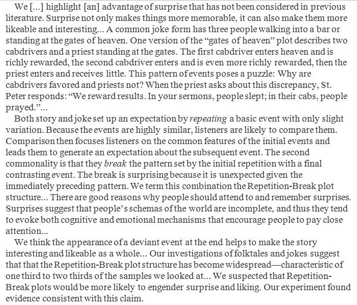 Repetition break: Many jokes, folktales and other memorable narratives create an expectation through repetition, which is shattered in the finale. http://onlinelibrary.wiley.com/doi/10.1111/j.1551-6709.2008.01001.x/full …pic.twitter.com/BnMHIyUxh5