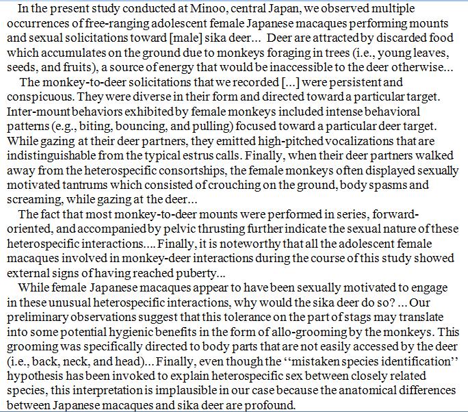 Several female monkeys of the amiable Japanese macaque variety were caught having - mostly consensual - sex with male deer. https://link.springer.com/article/10.1007/s10508-017-1129-8 …pic.twitter.com/59sHwRH0QJ