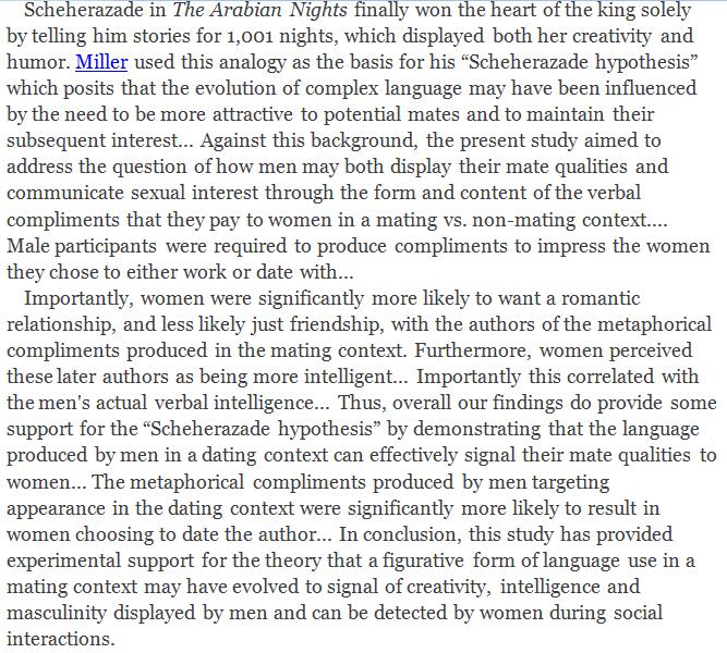 The problem, I think, i s linking compliments to intelligence. There are compliment tropes. Humour, on the other hand, may be a better indicator.Thanks. Twitter will use this to make your timeline better. UndoUndo