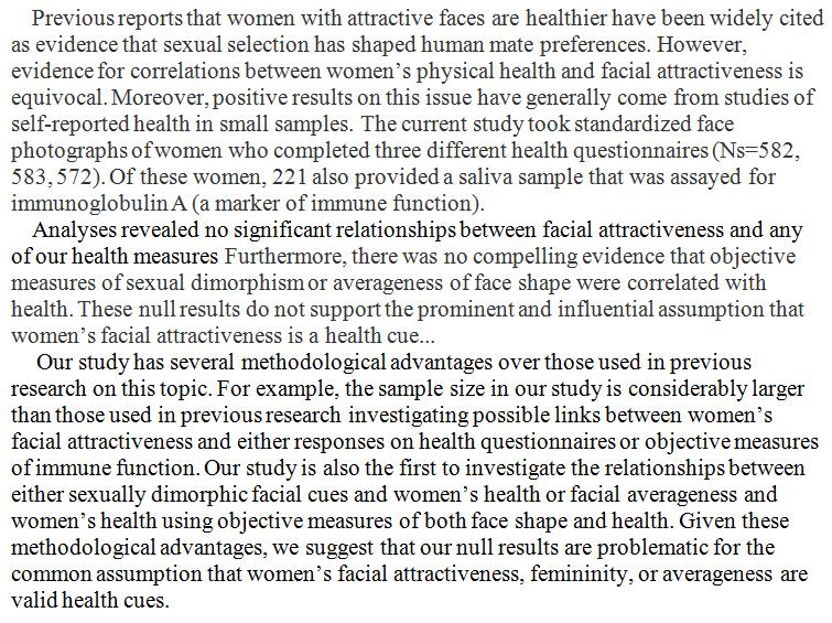 The beauty of the female face is no health certificate after all - which runs afoul of the dogma that human mate choice aims at good genes. https://osf.io/f9tu2/ pic.twitter.com/1xJqAcZFVV