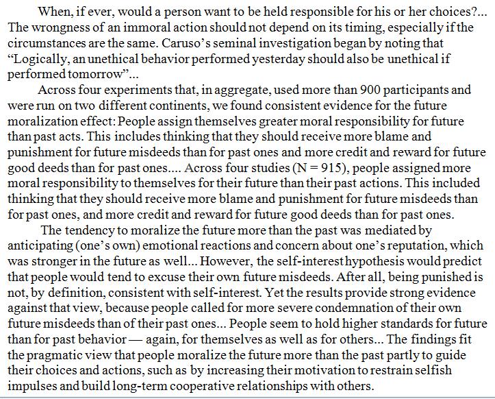 A possible reason for the past misdeeds in the “future moralization effect”: they can’t be undone (irreversible) so putting less moral responsibility on them would be a self pardoning “strategy”, a form of relieving the suffering that comes from blame/punishment