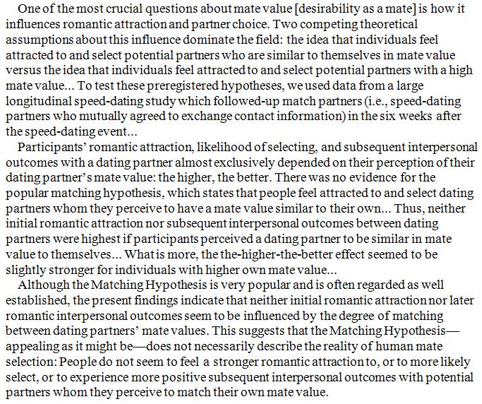 I think it is still interesting to show that people don't have a motive to find a matching partner, and that a good match doesn't improve relationship quality.