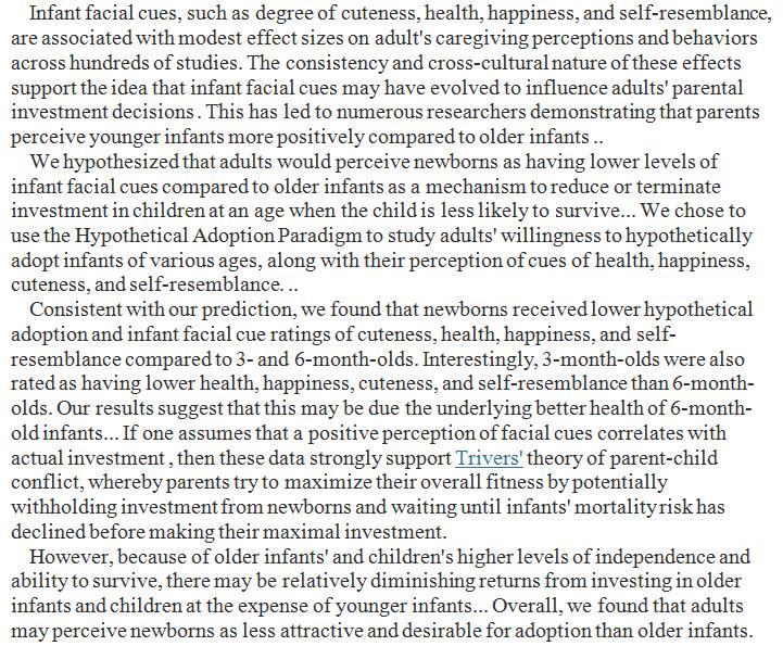Newborns' faces evoked less perceptions of cuteness and willingness to adopt than 3 or 6 old infants' faces. https://www.sciencedirect.com/science/article/pii/S1090513817303434 …pic.twitter.com/FlRHHUfyVH