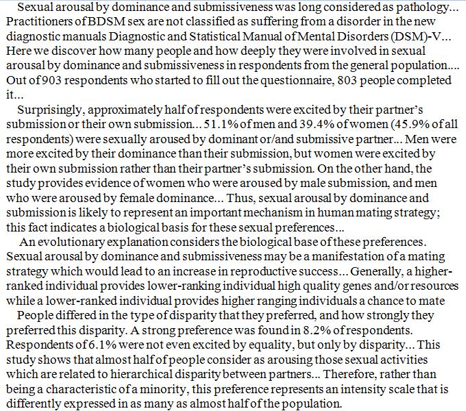A result of under reporting indeed. Seems telling that of the 900 that started the survey 100 didn’t finish. I don’t think people, especially women like to admit a desire to be dominated. Interesting concept though.