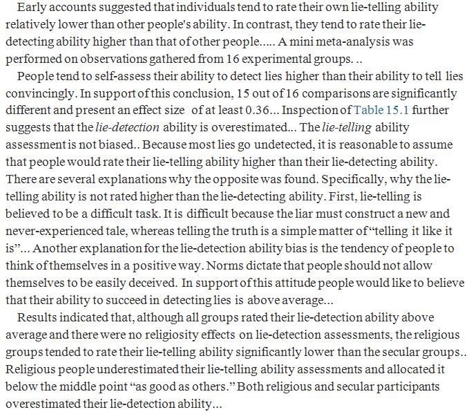People consider themselves to be worse liars than others, but better lie-detectors. https://www.sciencedirect.com/science/article/pii/B978012812729200015X …pic.twitter.com/WDUhj9aipO