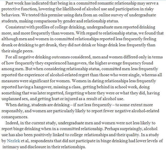 Although students in committed romantic relationships didn't drink any less than singles, they suffered fewer alcohol-related consequences, like hangover and regret. https://www.sciencedirect.com/science/article/pii/S0362331918300284?dgcid=raven_sd_aip_email …pic.twitter.com/pIYLq8EjAE